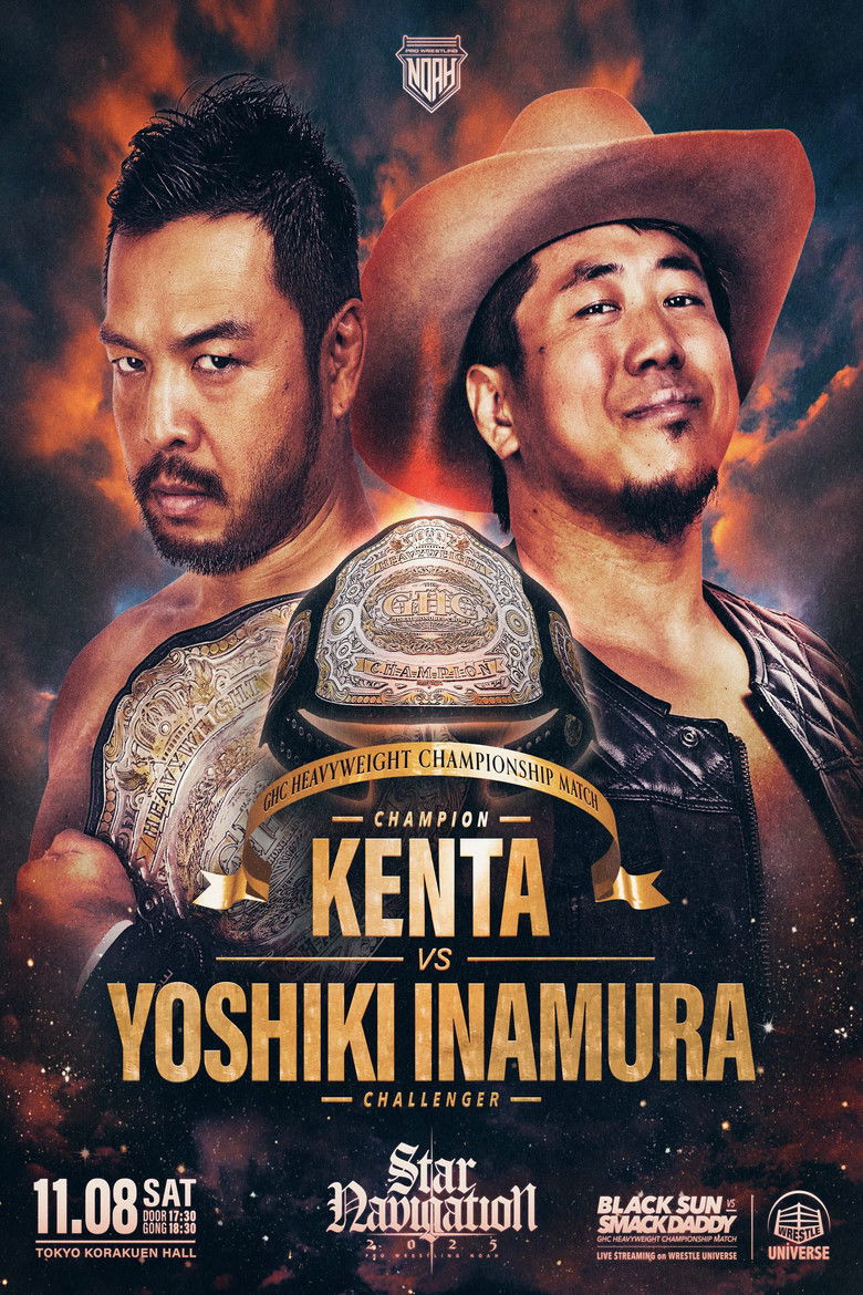 0/10NOAH Star Navigation 2025 #5 was held on November 8, 2025 at the famed Korakuen Hall in Tokyo, Japan, marking one of the most pivotal nights of NOAH’s calendar. The Main Event was a generational battle for the GHC Heavyweight Championship as KENTA defended against Yoshiki Inamura. Team 2000X defended the GHC Tag Team Championships against WWE NXT's Hank and Tank. Also, the start of the 2025 NOAH Jr. Grand Prix Tournament.