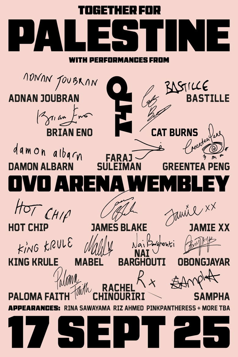 Broadcast of the "Together for Palestine" charity concert organized by Brian Eno along with several artists to raise funds and awareness for Palestinian civilians affected by the ongoing genocide in Gaza.
